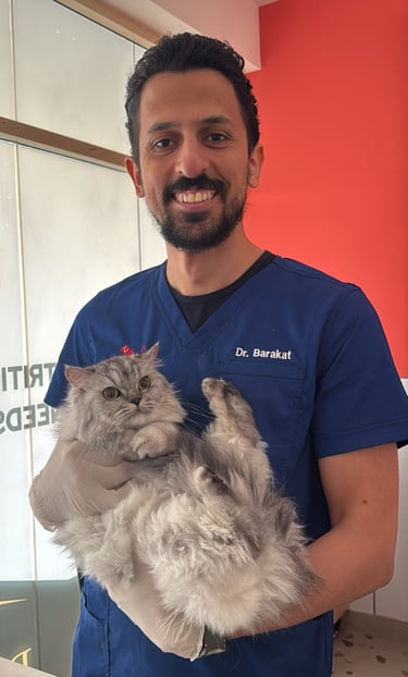 Philosophy of Care Dr. Barakat believes that every pet deserves a stress-free and comfortable healthcare experience. His philosophy centers on proactive and preventative medicine, focusing on early diagnosis and client education to ensure pets lead long, healthy, and happy lives. His dedication to continuous learning and utilizing the latest veterinary techniques makes Kayan Veterinary Clinic a center of excellence in the region.